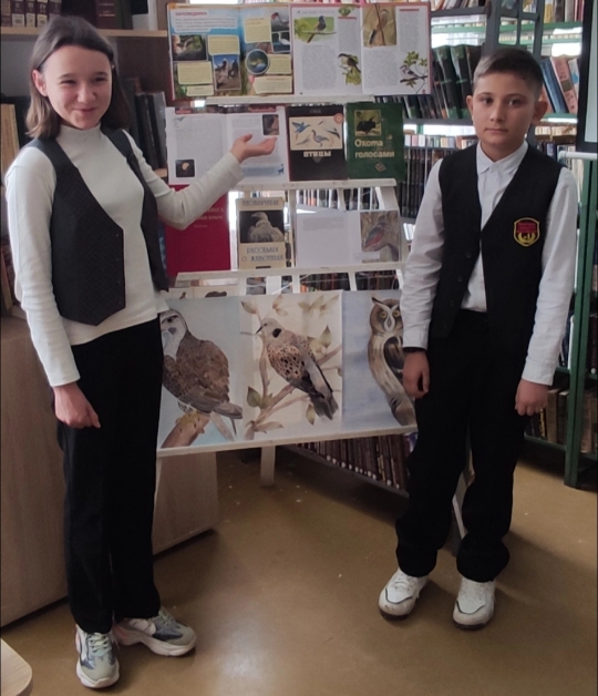 Ребята организовали в школьной библиотеке выставку книг о птицах, рассказали интересные факты о птицах одноклассникам.