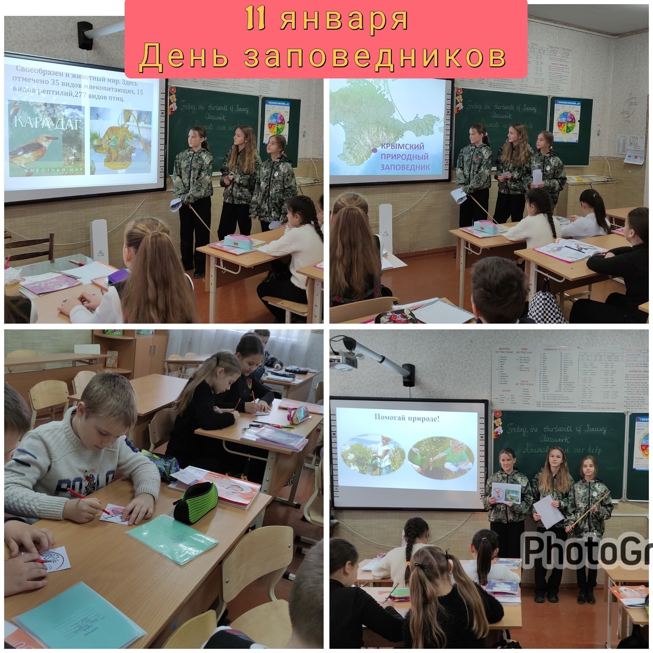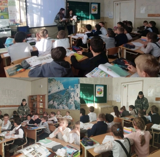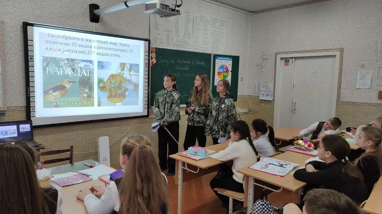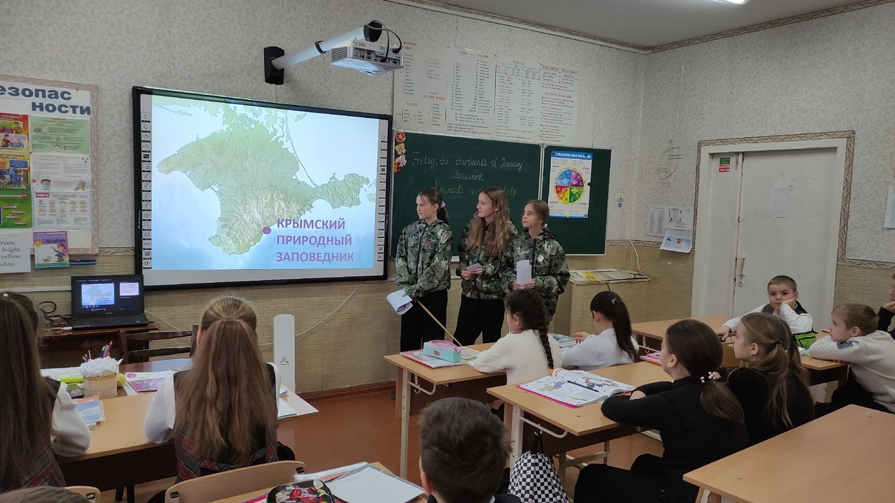 Учащиеся школьного лесничества "Зелёный патруль" провели экологические уроки для учащихся 4-А класса на тему "Заповедники Крыма".