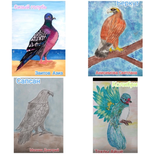 Учащиеся МБОУ "Гимназия 1 имени К. И. Щëлкина" члены школьного лесничества "Зелëный патруль" действующего на базе ГАУ РК "Белогорское лесное хозяйство" завершили неделю приуроченную к Международному дню птиц, вот такими шикарными рисунками.