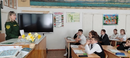 Для учащихся Гимназии 1 имени К. И. Щëлкина и членов школьного лесничества "Зелëный патруль" сотрудником ГКУ РК «Юго-восточное объединенное лесничество» территориальный отдел - Белогорское лесничество, участковый лесничий Прияйлинского участкового лесничества Бурмистровой Екатериной Дмитриевной был проведён экологический урок