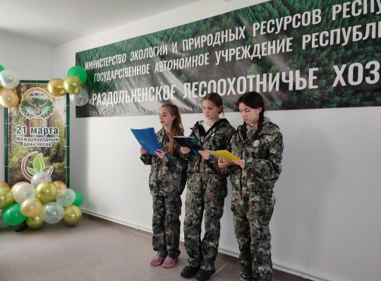 24 марта на базе ГАУ РК «Раздольненское лесоохотничье хозяйство» прошла конференция для членов школьных лесничеств, приуроченная к Международному дню лесов. В конференции приняли участие члены школьного лесничества "Зелёный патруль" Толок Анна, Медведева Мария и Юнусова Мавиле.