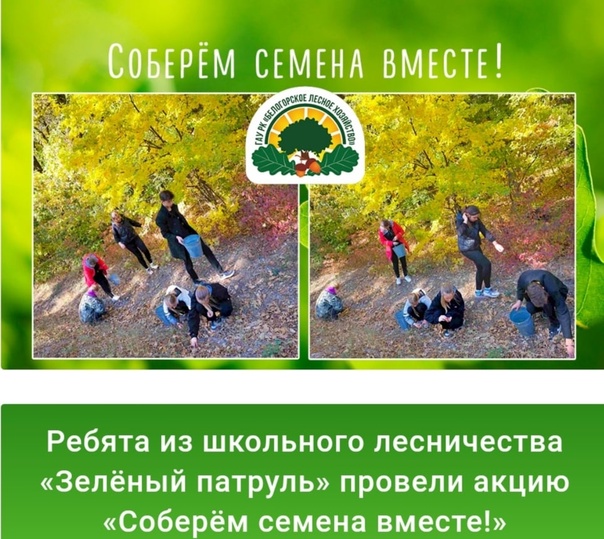 19 октября ребята из школьного лесничества «Зелёный патруль» провели акцию «Соберём семена вместе!», собрав 60 кг желудей, которые в дальнейшем будут высеяны в лесных питомниках ГАУ РК «Белогорское лесное хозяйство».