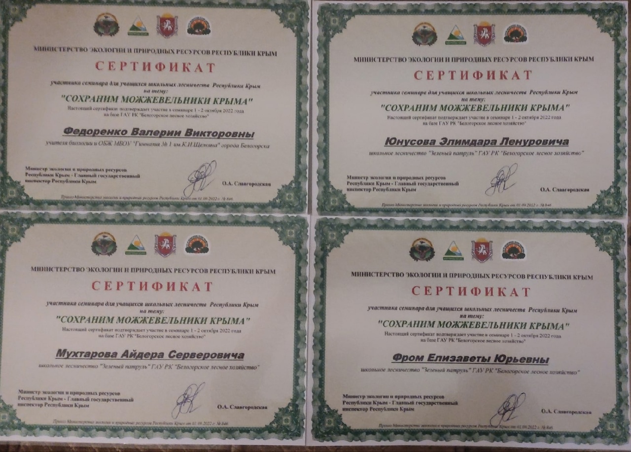 С 1 по 2 октября на базе ГАУ РК "Белогорское лесное хозяйство" состоялся семинар для школьных лесничеств Республики Крым, посвящённый проблеме сохранения можжевельников Крыма.