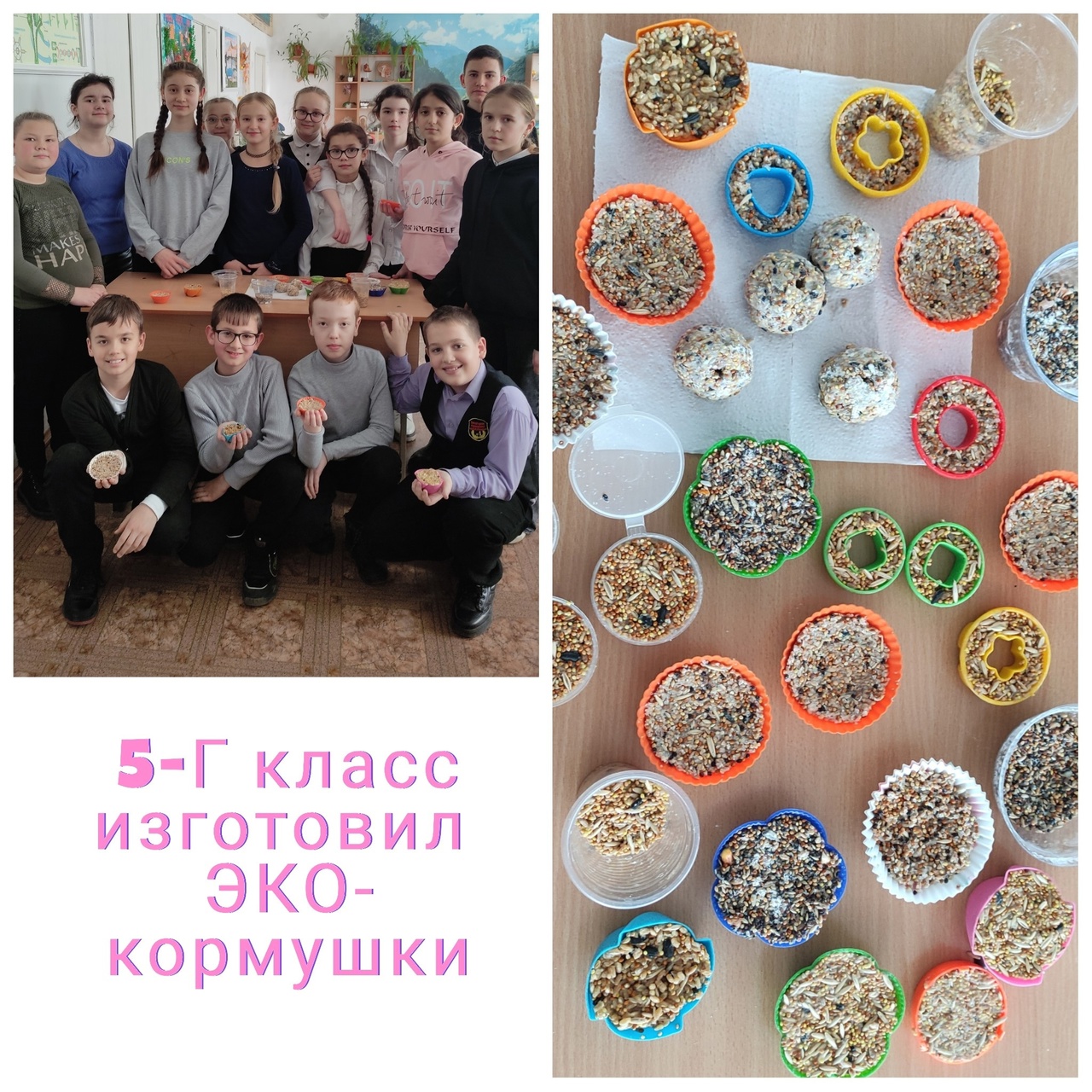 Учащиеся 5-Г класса, члены школьного лесничества "Зелëный патруль" действующего на базе ГАУ РК "Белогорское лесное хозяйство'' в день экологического образования приняли участие в изготовлении эко-кормушек для , тем самым повышая своё экологическое воспитание.